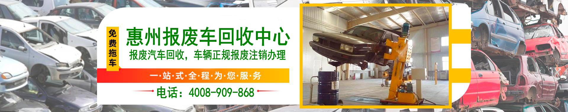 查看更多-->惠州報(bào)廢車回收平臺(tái)是廣東汽車報(bào)廢信息技術(shù)有限公司旗下專門辦理機(jī)動(dòng)車報(bào)廢的網(wǎng)站,惠州報(bào)廢汽車回收平臺(tái),主要提供報(bào)廢車回收車輛補(bǔ)貼咨詢,轎車、面包車、貨車等汽車報(bào)廢回收,辦理車管所注銷業(yè)務(wù),免費(fèi)上門拖車,歡迎咨詢。